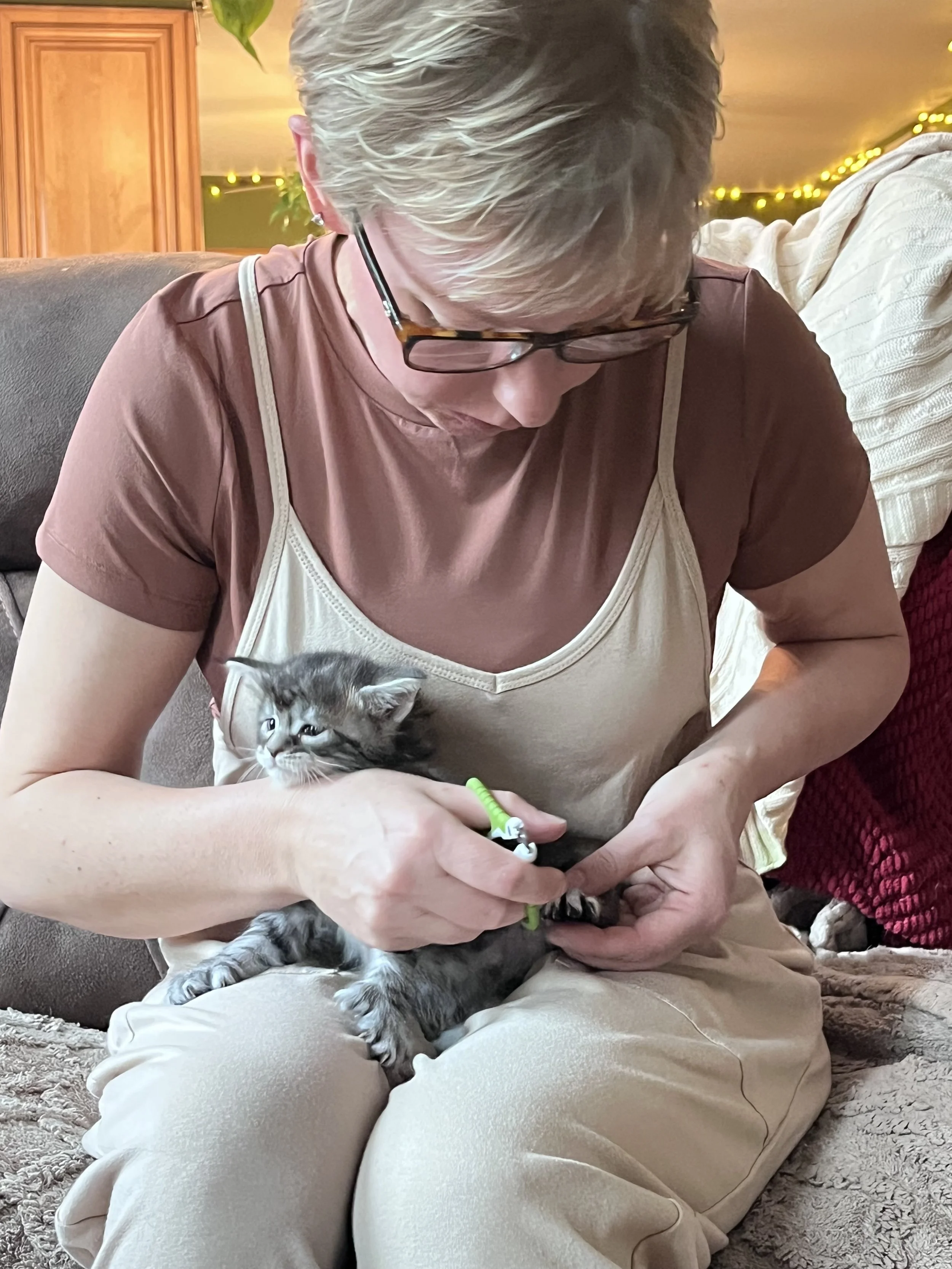 This is also the week we introduce nail trims. It’s a small but important part of their routine, and we keep it gentle and low-stress. Just a quick clip while they’re relaxed helps them get used to the process early. We also brush them gently- setting them up for a lifetime of easy grooming.