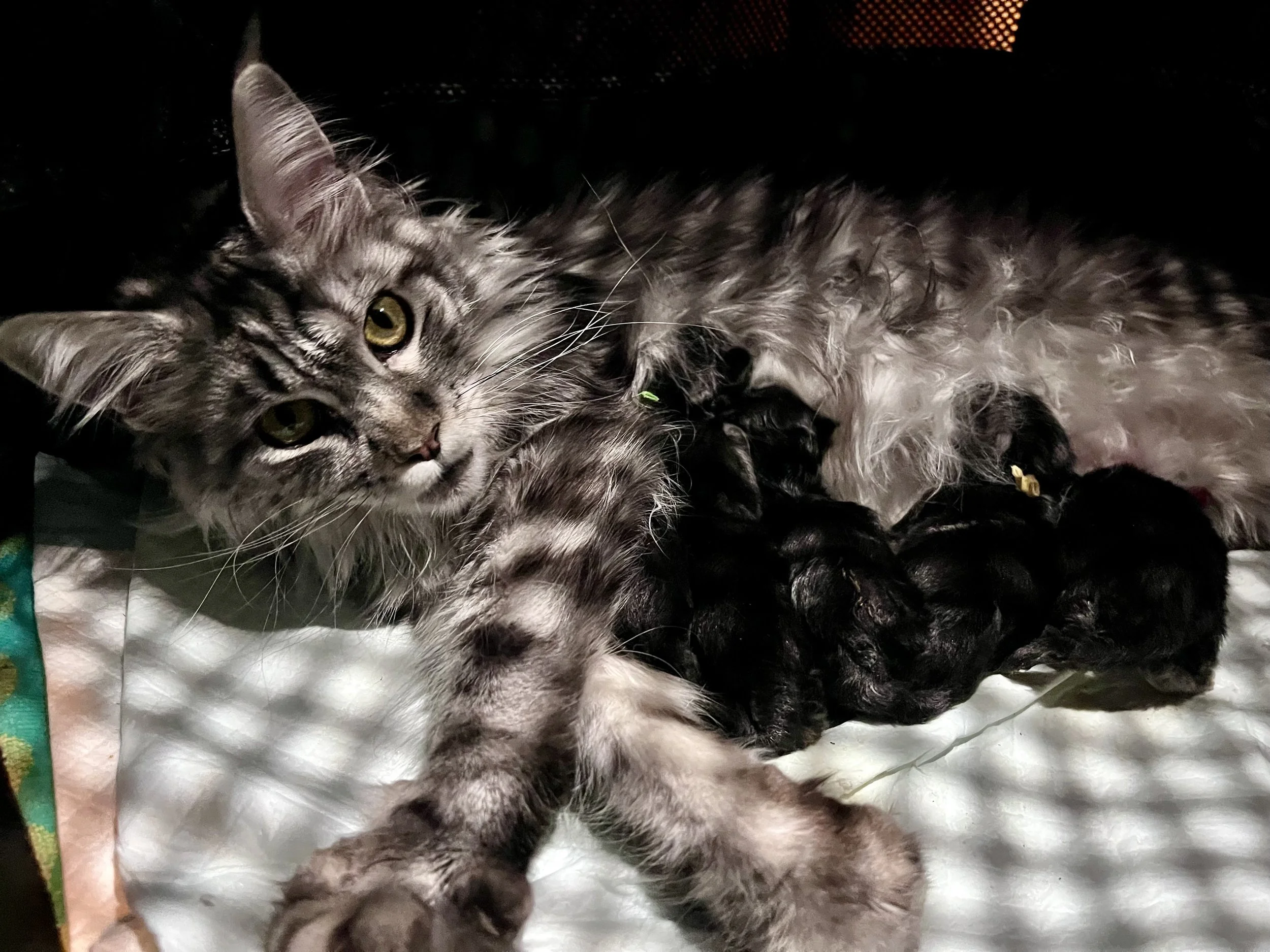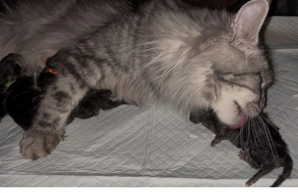 When a litter of Maine Coon kittens arrives, the first week is entirely focused on survival and stability. Newborn kittens are incredibly fragile, so the first week, we are focused only on warmth and weight gain.